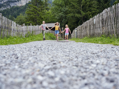 Starting point: From the Alvierbad Brand or from the bus stop at the Gemeindezentrum (community center), head towards Valavier Säga-Lädele and the Kneipp facility. After the Kneipp area, turn right and enjoy a leisurely circular walk by turning left over the bridge at Alpenlodge – Das Dorfhotel. After crossing the bridge, turn right and follow the path until you reach the Animal Adventure Trail (Tiererlebnispfad).