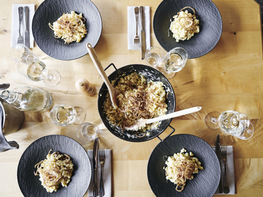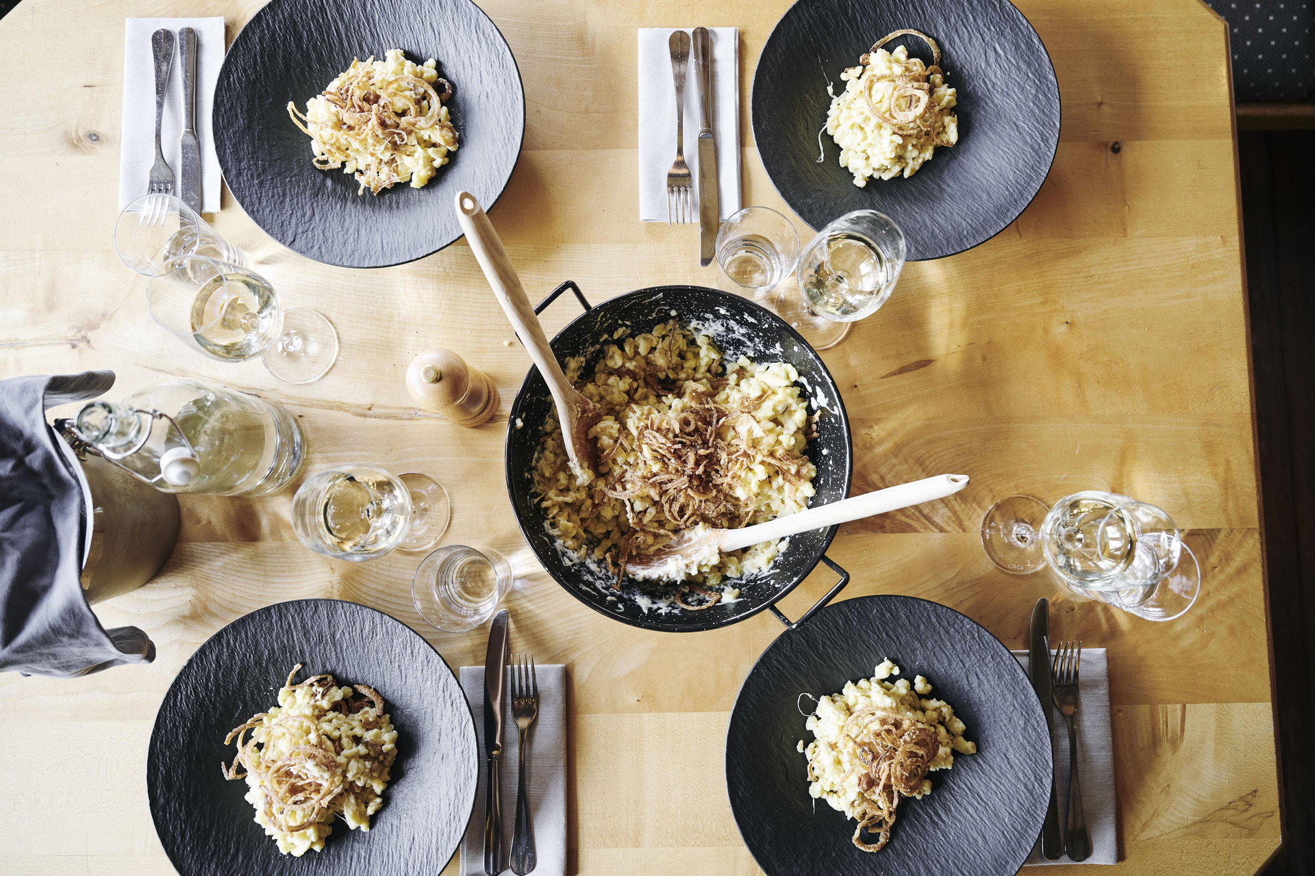 € 45.00 per adult | € 35.00 for children up to 14 years (including "Vorarlberger Käsespätzle" | excluding drinks)