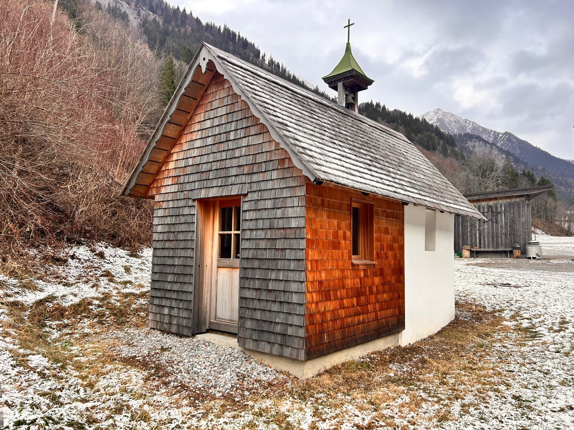 Die Parzelle Sonnenhalb in Dalaas verweist schon in ihrem Namen auf die begünstige Lage. Das äußere Erscheinungsbild des verschindelten Hauses in Blockbauweise hat sich in den vergangenen 120 Jahren kaum verändert. Typisch für die Bauweise im Klostertal sind der gemauerte Flur-Küchen-Bereich und der Aufbau aus Holz. Das große Anwesen befand sich einst im Besitz von Stefan Schnetzer, dessen Landwirtschaft zu den bedeutendsten des Ortes gehörte. Er bewirtschaftete gemeinsam mit seinem Bruder Andreas den Müller Maisäß oberhalb der Bahnlinie, der zu größten Maisäßen im Klostertal zählte. Dort wurde einst auch Milch verarbeitet. Die zum Haus gehörige Kapelle Mariahilf mit Satteldach und einer eigenen Glocke befindet sich westlich des Anwesens. Sie stammt wie die meisten Kapellen des Klostertals aus dem 18. Jahrhundert, in dem auch das heute noch bestehende Altarbild Mariahilf entstand.