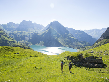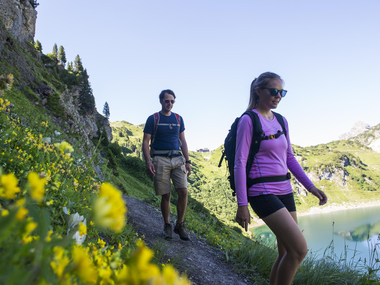 On site, you can freely allocate your time: either by circling the lake or enjoying a meal at the Ravensburger Hütte at Spullersee or the Freiburger Hütte at Formarinsee.