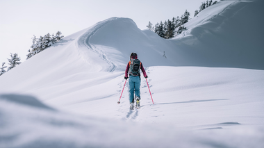 Für eine sichere Skitour ist eine sorgfältige Planung unerlässlich: Informiere Dich über Wetter- und Lawinenlageberichte und packe die passende Ausrüstung ein – darunter LVS-Gerät, Sonde, Schaufel und ein Erste-Hilfe-Set. Alles, was Du brauchst, findest Du in den Sportgeschäften und Verleihen im Großen Walsertal.