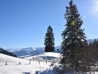 Zu Fuß wanderst Du entlang des Winterwanderweges hinauf zur Alpe Unterpartnom bevor es anschließend auf dem Rodel zurück zur Bergstation der Gondelbahn geht.