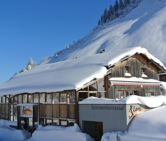The Lari Fari restaurant is located on the Faschina Pass in the Großes Walsertal biosphere reserve and offers hot meals throughout the day. There may be rest days in between.